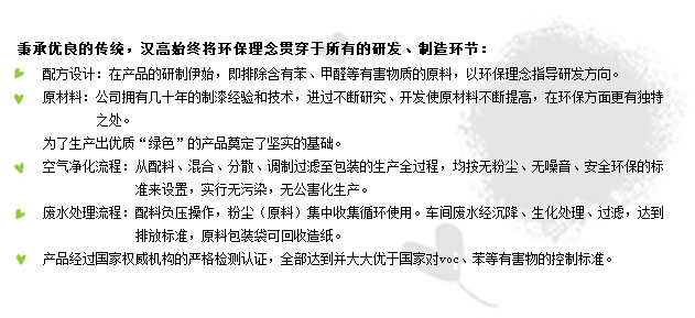 汉乐高集团作为国内知名涂料公司,多年来一直致力于环保漆的开发和研制,时刻关注人类生存的环境,始终将环境保护放在首位。汉乐高的信条:“环保”不是结果,而是持之以恒的过程。