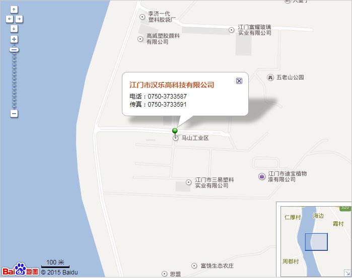 江门市汉乐高科技有限公司生产基地:广东省江门市荷塘镇马山工业区电话:0750-3733587传真:0750-3733591
